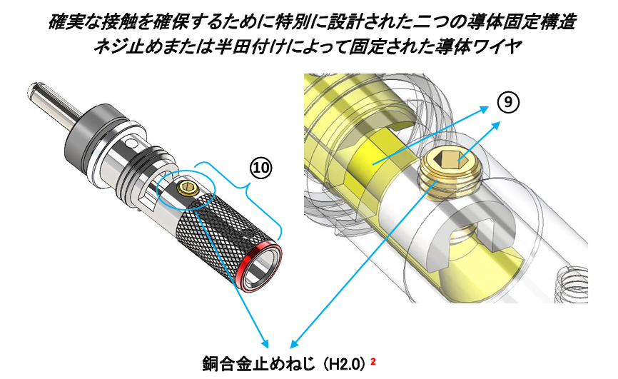 - ネジ止めまたは半田付けによって固定された導体ワイヤ