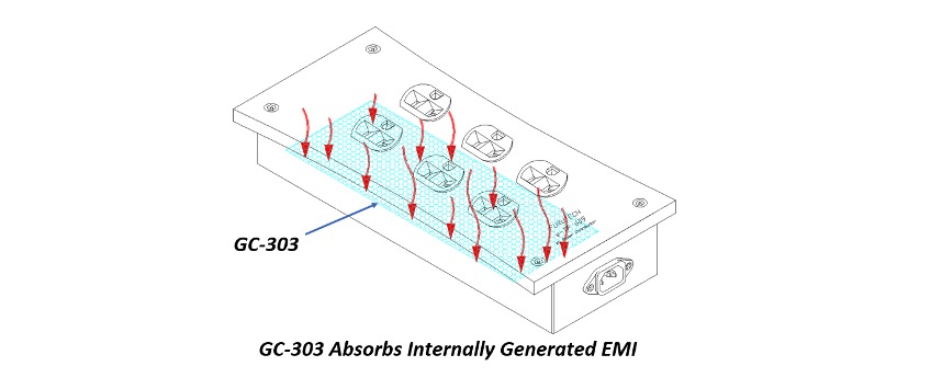 GC-303は、FURUTECHがシャーシ内部の底板に接着した特殊素材です(下図参照)。ユニット内部の部品から発生するEMI(電磁干渉)を吸収します。e-TP609 NCF-N1は、Formula GC-303以外のフィルターを一切使用していないため、AC抵抗が最小限に抑えられ、コンポーネントからより解像度が高く、パワフルで、ダイナミックで、色彩豊かなパフォーマンスを引き出します。
