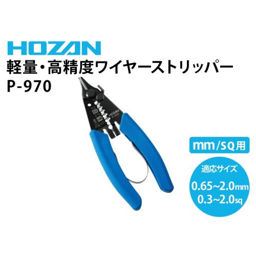 P-970 ワイヤーストリッパー(撚線0.3sq~2.0sq/単線0.65mm~2.0mm)