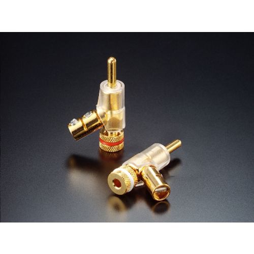 24K金メッキを施したオーディオグレードアングルタイプバナナプラグ。