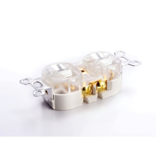 導電性に優れ、バネ性のある燐青銅電極(刃受部)の新構造により、確実な接触圧が長期に渡り安定して保たれます。 また、独特な形状の新構造電極(刃受部)は鋭いエッジを無くし丸みを持たせることにより差し込まれる電源プラグのブレード(刃)材が研磨によって傷つけられるのを防ぐとともに接触面積の拡大と確実性の維持に成功しロスの無い給電を実現しました。